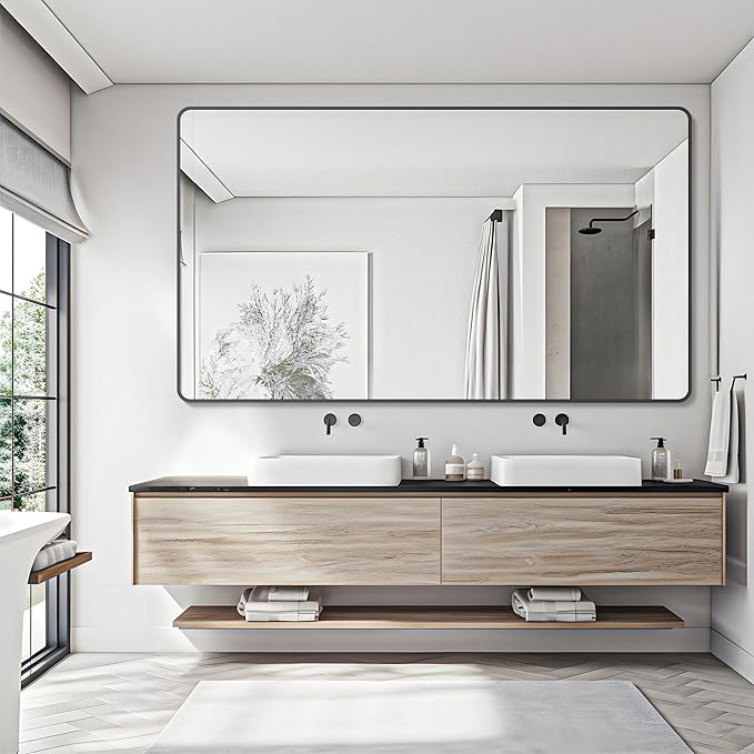 - [CLEAR REFLECTION]: Bathroom vanity mirrors are made of high-definition glass. The mirror provides a clear reflection and does not distort the image from any angle.