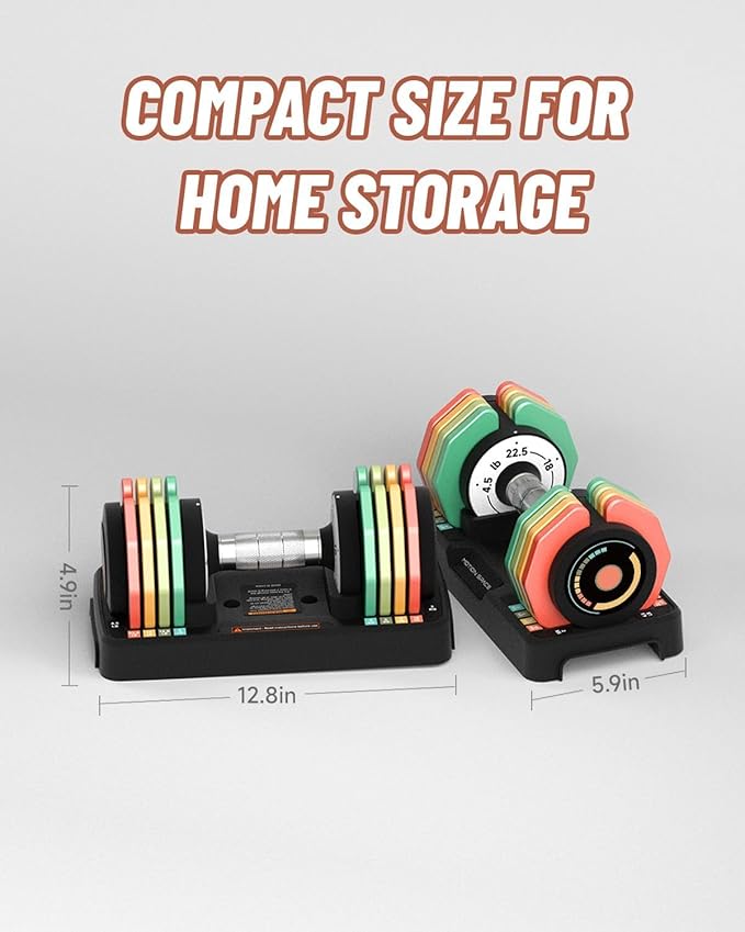 • šŸ„‡ć€5-IN-1 DUMBBELL SET怑Train with 5 weight options in one dumbbell. Dumbbells adjustable weight from 4.5-22.5LBS, perfect for full-body workouts. Each pair can go up to 45LBS.