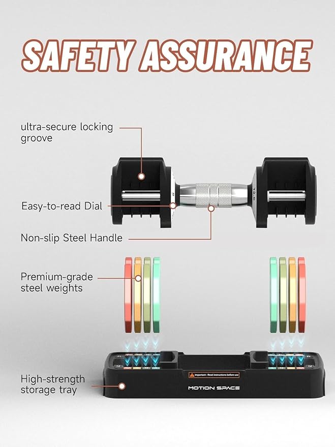 • šŸ„‡ć€SAFETY DESIGN怑With its innovative count weight plate design, it easily adjusts the weight by holding the handle and turning the pointer to the desired number. Our latest design includes 8 locking mechanisms, providing stability and ensuring safety during workouts.