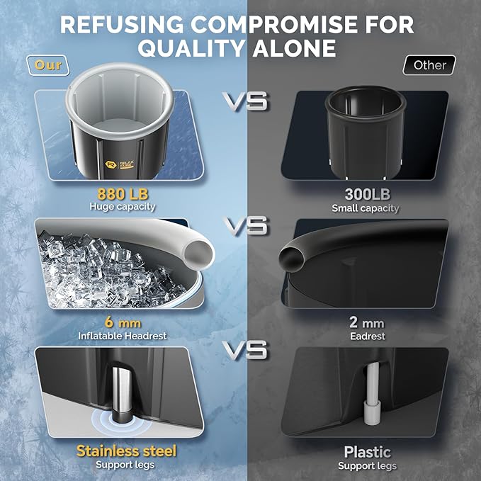 - 【Versatile and Adaptable】Ideal for athletes looking to improve performance, fitness enthusiasts seeking enhanced recovery, or anyone wanting to enjoy cold therapy. Use it at home, in the gym, or on your next camping trip for invigorating ice baths anytime, anywhere.