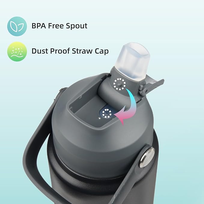 - Leak-proof and dust-proof straw design ensures beverages stay securely contained.You can close the spout after taking a sip.Non-sweat bottle exterior prevents condensation, keeping your hands dry