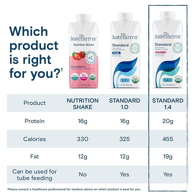 KATE FARMS Organic 1.4 High Calorie Nutrition Shake, Strawberry, 20g Protein, 27 Vitamins and Minerals, Meal Replacement, 11 oz (6 Pack)
