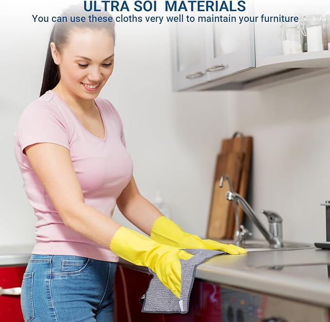 - Material Upgrading: Our wire dishwashing rag Made from 80% chemical fiber materialsand 61% polyamide of a premium microfiber with a highly absorbent, streak-free and lint-free features. It has the ability to pick up and lock dirt, dust, moisture into the fibers, cleaning and drying the applied surface. Use a wire rag on both sides to clean stubborn stains