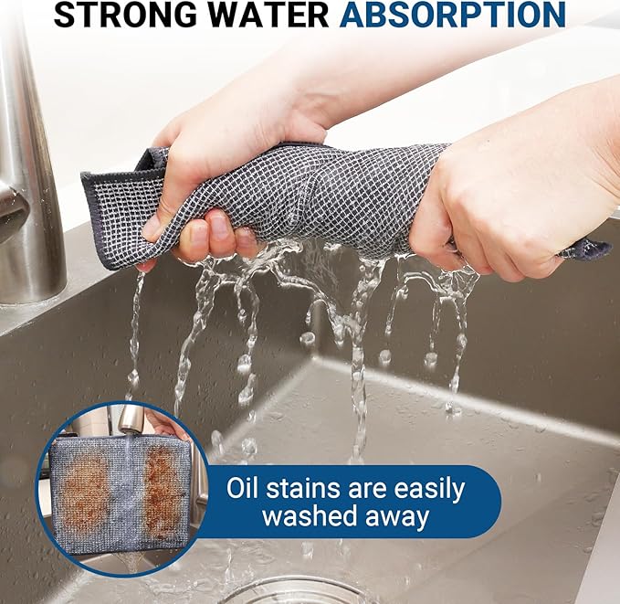 - Multiple Uses:The fine hole design of our dishcloth dishcloths makes them very useful. You can wet them, remove dirt on the silver side, and then remove the dirt while the rag surface absorbs moisture and cleans better, and effectively cleans the meal can be used to clean the dirt from dishes, sinks, counters, stoves, barbecue grills, and can also be used to clean curtains, vents, handrails, headboards, window grooves, faucets and footboards, etc.