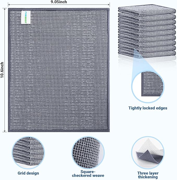- Eco-friendly and long-lasting: You'll receive 10 packs of finely crafted Three-laye wire cleaning cloths, each dishrag measuring 9.84 inches by 9.84 inches , can withstand multiple wash cycles, maintain performance, and can be reused