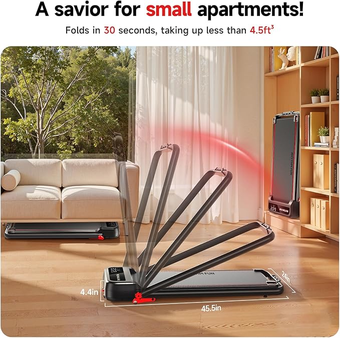 - 【Spacious & Secure Stride】Run freely on the 36.6" x 15" 5-layer non-slip belt. The shock-absorbing design protects your knees, while sturdy handle bars keep you steady during sprints. Finally, a treadmill that cares about your joints and your safety!