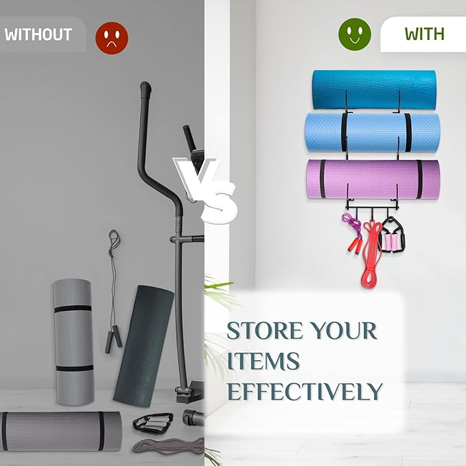 - [Home Gym Organizer] Yes4All's Roller holder offers you an efficient way to store your exercise and yoga mat, foam rollers, workout bands and more at your fingertips.