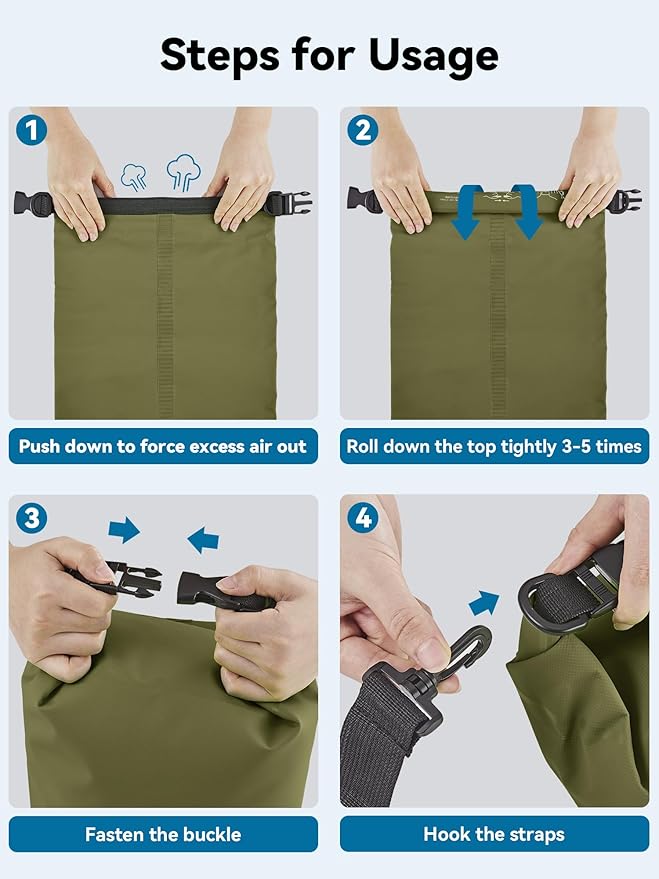 - Multifunctional - Equipped with adjustable shoulder straps for shoulder carrying and backpack, our dry bag is very convenient for different occasions like boating, rafting, kayaking, hiking, camping, fishing, mountaineering, etc. The lightweight dry bag won't weigh down your arms or shoulders