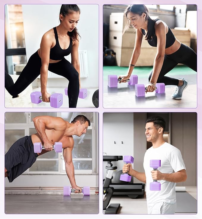 • 4 In 1 Adjustable Hand weights dumbbells set for men women. Dumbbell set for women consists of 8 weight 0.95lbs dumbbell plate, adjustable range is 4lb, 6lb, 8lb, 10lb each weight (A Pair 8lbs 12lbs 16lbs 20lbs).