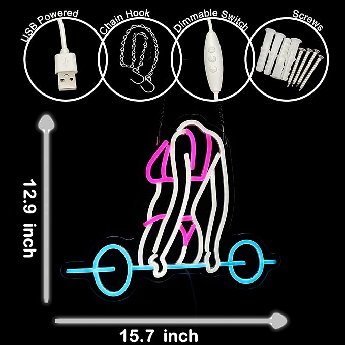 - This gym neon sign has a popular design. Can be used as a very interesting gift for friends.