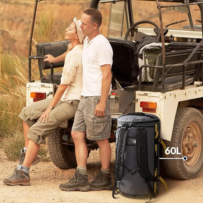 Haimont Large Duffle Bag Backpack for Travel, Men Women Duffel Backpack Bags with Shoes Compartment for Camping, Traveling, Sports, Trip, Water-resistant, 60L Grey