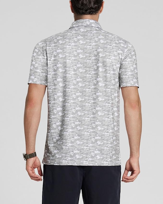 • Style Feature: This golf polo for men use allover print stretch fabric with easy care and keep good shape, well-made stitching.