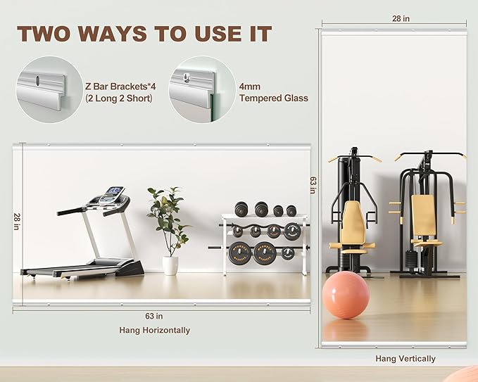 - š„[HD Mirror]-The home gym mirror ensures that the transparency of the glass material reaches a good level, and the imaging is more realistic and high-definition. The home gym mirror can clearly reflect people's postures and movements. It can inspire people's fitness journey and help people see their progress, so that they are encouraged.