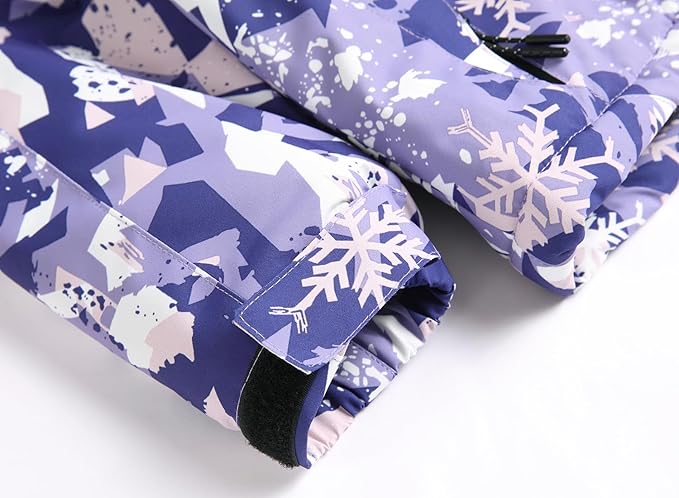 - Girls snowboarding jacket with elastic detachable hooded and hem help seal in warmth. Adjustable hook-and-loop closure cuffs provide custom fit with your children gloves. High-quality SBS zipper is matched with windproof placket, perfectly locks the warmth.