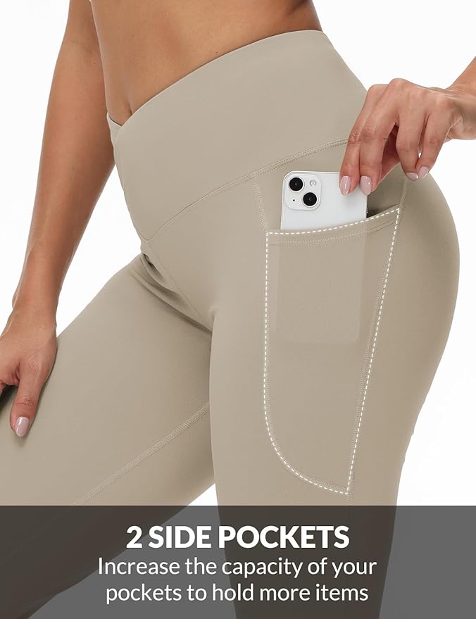 - Deep Side Pockets: These long yoga pants feature 2 side pockets that allow you to conveniently store your essentials like keys, cards, or smartphone during your yoga sessions, keeping your hands free and your belongings secure.