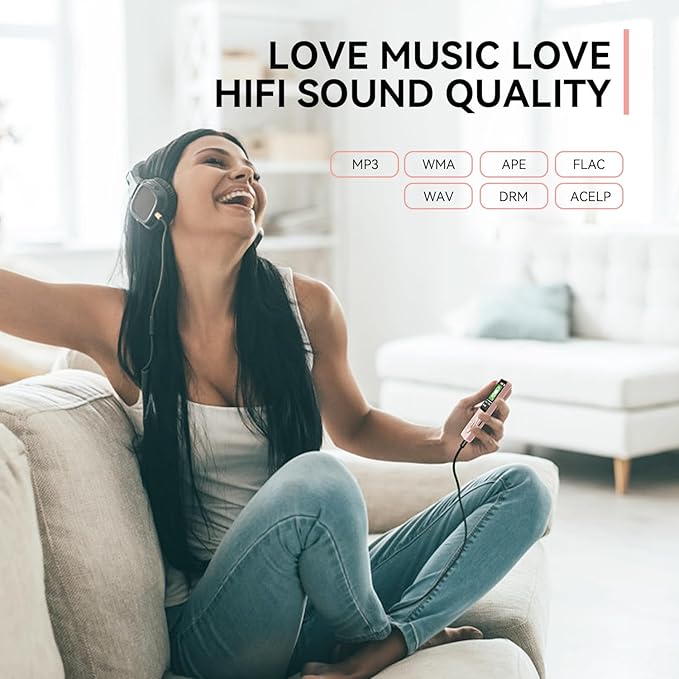- 【Lossless sound quality】Support formats:MP3, WMA, OGG,WAV, APE, FLAC, AAC-LC, ACELP.【Note It does not directly support Audiobook and iTunes.】Built-in speaker, Brings you amazing listening experience. [Tips: First, long press the "VOL" button to enter the volume control, then press the left or right button to increase or decrease the volume.]