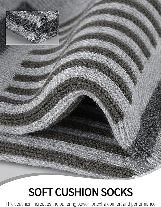 - Excellent Fit: Our men & women running socks made with a touch of soft and stretchy Spandex so it gently conforms to the shape of the foot. Airacker cushioned socks provide 3 sizes in Black White Gray and Mixedcolor for options to meet your demands.