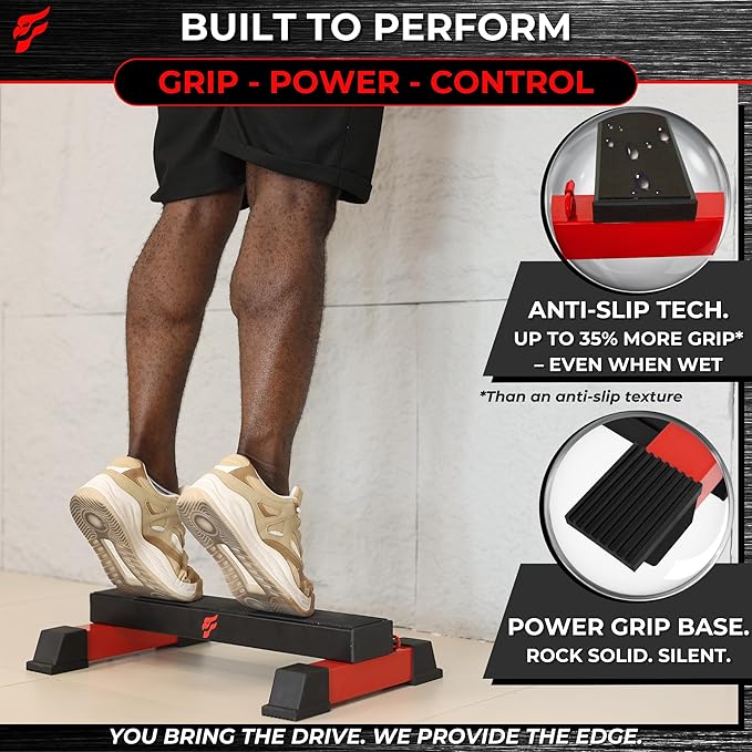 - ✅ [Anti-Slip Tech – Safe on Any Surface] Train with confidence thanks to a specially engineered anti-slip surface that delivers reliable traction whether dry or wet. Offering 35% more grip than standard platforms, it helps prevent slips and injuries during intense calf raises and strength workouts.