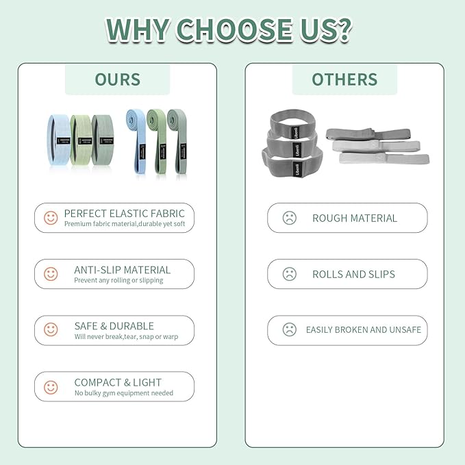 - 【Non-Slip, Comfortable and Durable】: Resistance bands are made of high-quality cotton and latex, thick and breathable, skin-friendly and enhance comfort. The latex on the inner ring provides high elasticity and makes the hip bands anti-slip and anti-rolling during exercise. Upgraded interface technology makes exercise bands more durable.