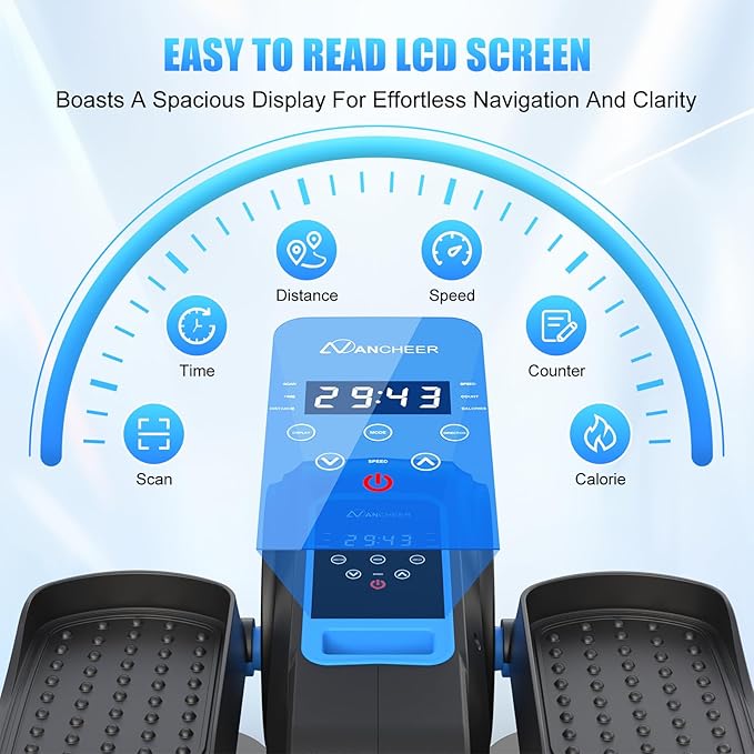 - Clear Display for Real-Time Workout Tracking: This ANCHEER ellipse leg exerciser as seen on tv that it features a built-in high-definition display that tracks and shows your workout data in real-time. Time, distance, speed, calories burned, and total laps are clearly displayed, helping you better monitor and adjust your exercise plan for optimal fitness results
