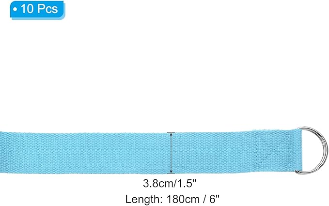 - Color: Sky Blue; Material: Cotton; Length: 180cm / 6 Feet; Width: 3.8cm / 1.5 Inch; Packing List: 10Pcs x Yoga Bands