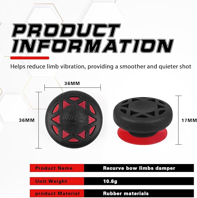 • Reduce vibration: Superior vibration and noise reduction for solid-limb recurve bows Helps produce a smoother and quieter shot by greatly reducing vibration caused from your limbs.