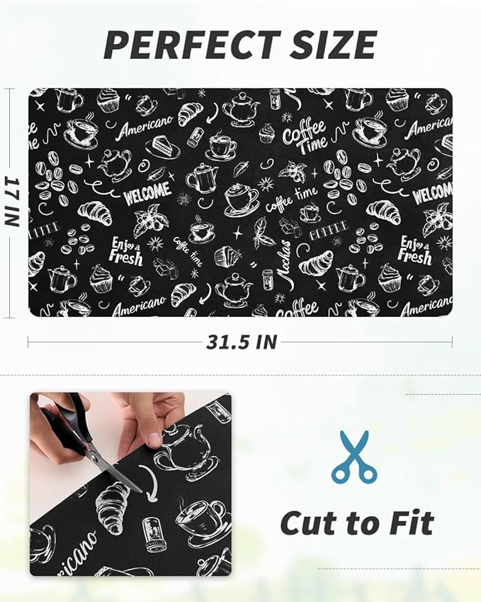 AMOAMI Coffee Mat Hide Stain Rubber Backed Absorbent Dish Drying Mat for Kitchen Counter - Fits Under Coffee Maker & Machine (17x31.5, Ink)