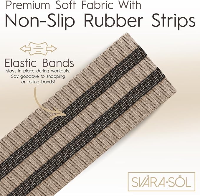 - PREMIUM QUALITY FABRIC RESISTANCE BANDS – Svära Söl fabric resistance bands are designed to withstand intense workouts without rolling or breaking. Crafted from durable, these bands provide superior grip and comfort during exercises like squats, lunges, and Pilates, giving you a workout experience that’s smoother and more effective than traditional rubber bands.