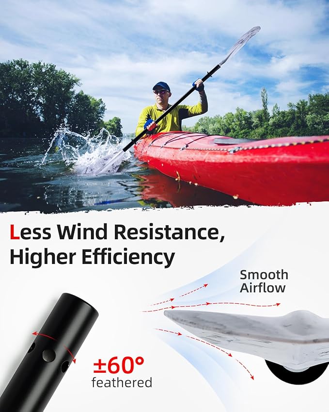 - 【LIGHTWEIGHT AND DURABLE 】The aluminum alloy shaft is known for its strength and ability to withstand the wear and tear of frequent use. In addition to its durability, the aluminum alloy shaft also offers better performance and more efficient paddling. PP blades are lightweight and indestructible blades offer flexibility and efficiency, making it easier for paddlers to navigate through the water with ease.