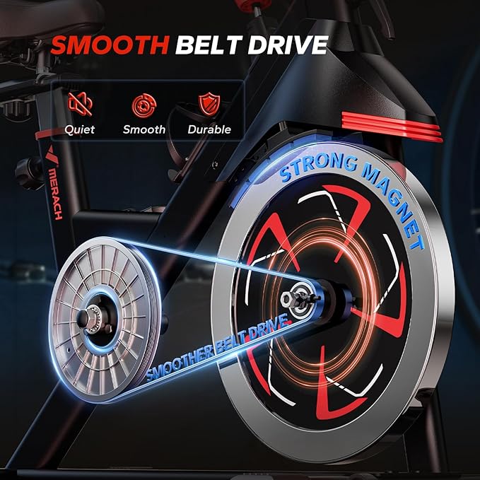 - INFINITE RESISTANCE FOR YOUR WORKOUTS: You can adjust resistance to any level, from light rides to intense climbs on this indoor exercise bike. This 0-100% resistance variation caters to the daily workout needs of individuals across different fitness stages. **Please note, you'll only see 16 resistance levels displayed on the Merach app