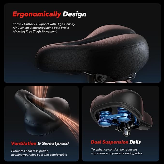 - USER-FRIENDLY BIKE: This workout indoor bike with high density foam and dual spring suspension design helps alleviate discomfort during your ride. The aluminum alloy pedal provides better flexibility, slip resistance, and safety. Additionally, the handlebars feature advanced ergonomic designs for a more comfortable grip, allowing you to focus on your workout without distractions