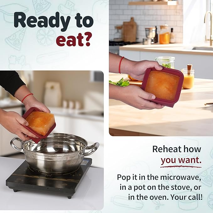 - VERSATILE & CONVENIENT FOR ANY KITCHEN TASK Use them for: Freezing homemade soups, sauces, and broths Storing baby food and portioning snacks Baking (up to 415°F without the lid) Making ice cubes, chocolates, and more! Dishwasher-safe for quick and easy cleaning, they save you time in the kitchen.