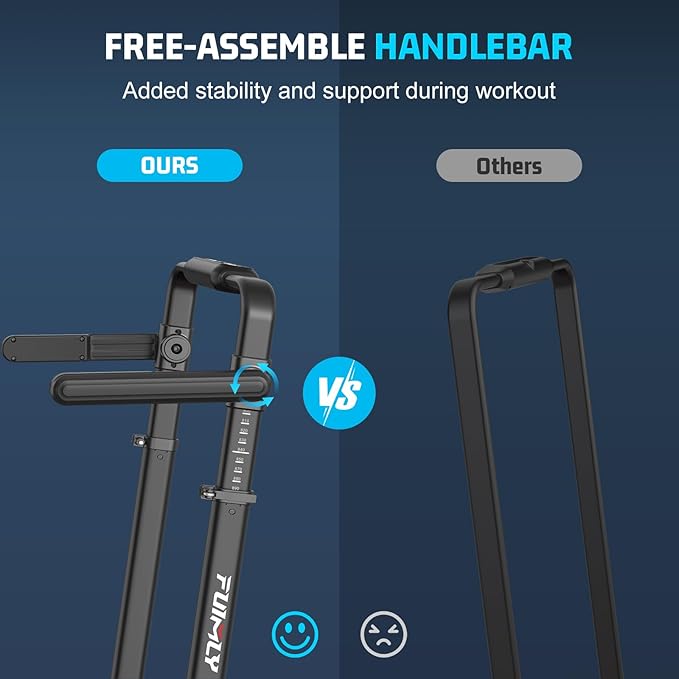 - FOLDABLE TREADMILL WITH ADJUSTABLE HANDRAIL :NEW innovative Funmily treadmill features adjustable handrails that provide personalized support during your workouts. Simply extend the handrails for added stability or fold them away to enjoy the freedom of arm movement while running. Its sleek, foldable design makes storage a breeze, making it perfect for home gyms, apartment, small spaces