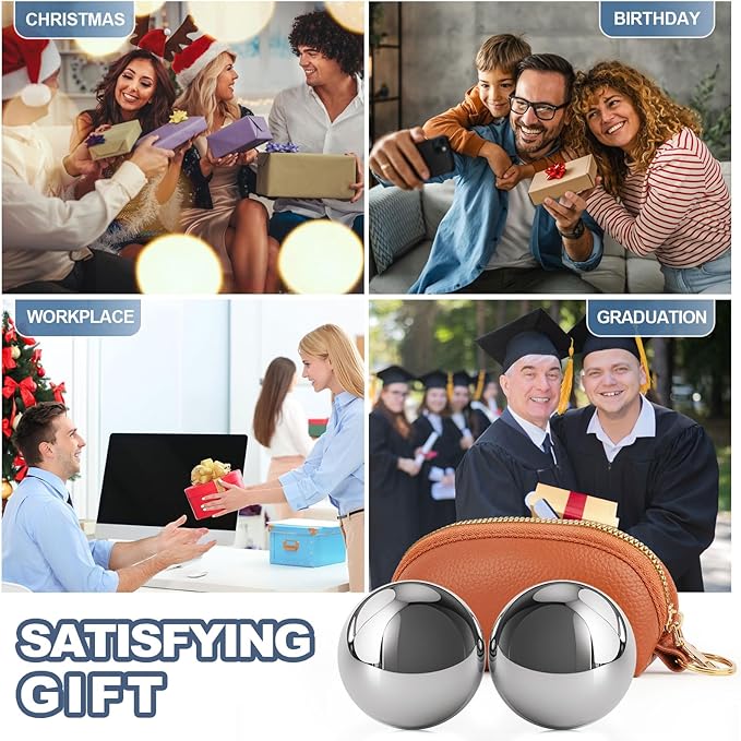 - The Baoding balls come in a beautiful leather bag, perfect for self-enjoyment or giving to friends and family. Their design is exquisite, the material is superb, and the appearance is simple and elegant. They are easy to carry and store. Whether it's a holiday gift, a birthday gift, or a business gift, they show your care and thoughtfulness
