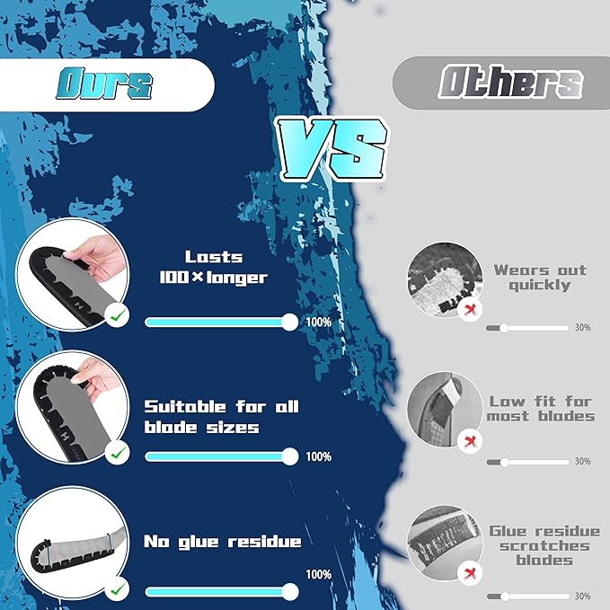 - [PERFECT CLOSE FIT] : Hikeen hockey skate guards are easily resizable and free to be adjusted by cutting in the right place, easy to use in just 3 steps, fits advanced, intermediate, beginner, and youth sticks as well as fits both right-handed and left-handed sticks!