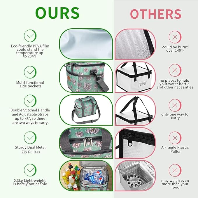 - 【INSULATED & STURDY】: 5mm pearl foam padding and eco-friendly PEVA lining of lunch boxes keep food warm or cold for 8 hours. Double-stitched zippers and premium metal dual zip pullers of lunch coolers ensure smooth open, rip-resistant and maximum durability.