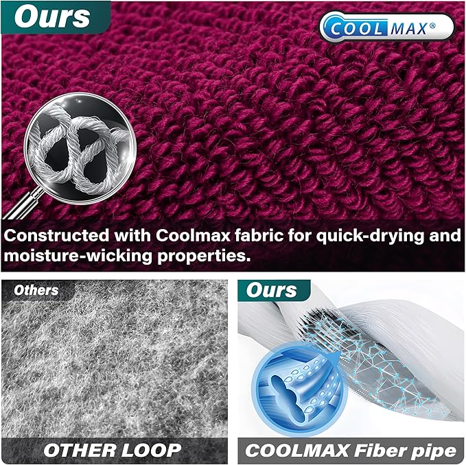 - Fabric type : 48% Coolmax, 8% Lycra, 44% Moisture Wicking Nylon