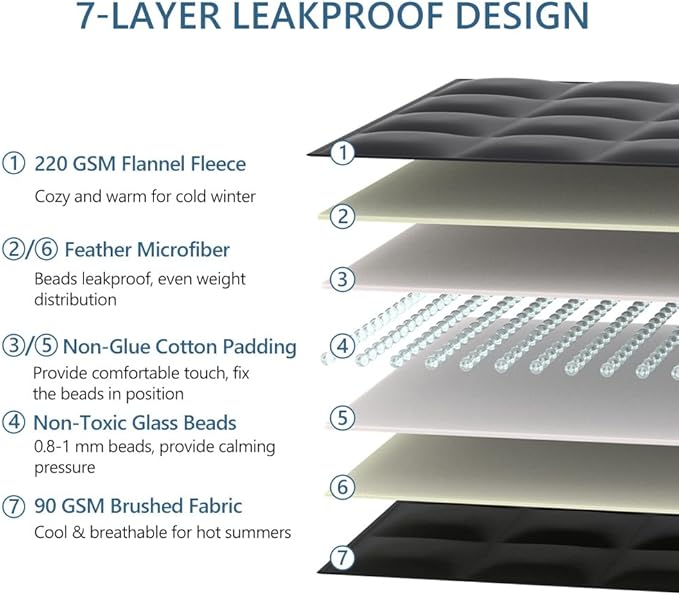 - Meet Your Various Needs: Our weighted blanket is perfect for adults, seniors, and pets. It can be used as a knee blanket for people with leg discomfort. When you are easily distracted at work, you can put heavy blanket over your shoulders, it can help you improve concentration. Body weighted blanket 7 lbs is perfect for people with "sensory needs" or "first-time users". Our weighted blanket is also a good choice if your pets are afraid of "rainy days"