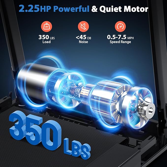 • 【Powerful, Functional & Entertaining】This treadmill for seniors walking with rails has a 2.25 HP motor, supports 350 lbs, and speed from 0.5 - 7.0 mph. It includes a desk for items like glasses, devices, or snacks; a cup holder for drinks; a phone holder for a mobile phone or iPad; and a Bluetooth Speaker for better workout vibes, making exercise more fun and engaging.