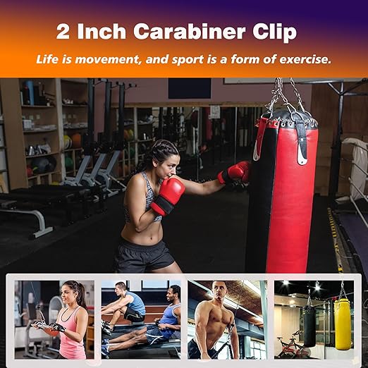- Black Carabiner Clip:Spring Snap Quick Connect Chain with Safety Lock features a self-closing design with a unique gate structure that locks quickly at the hook throat. The built-in spring pin ensures instant rebound for a one-touch secure connection, making it suitable for rigging, quick anchoring and other high-strength scenarios