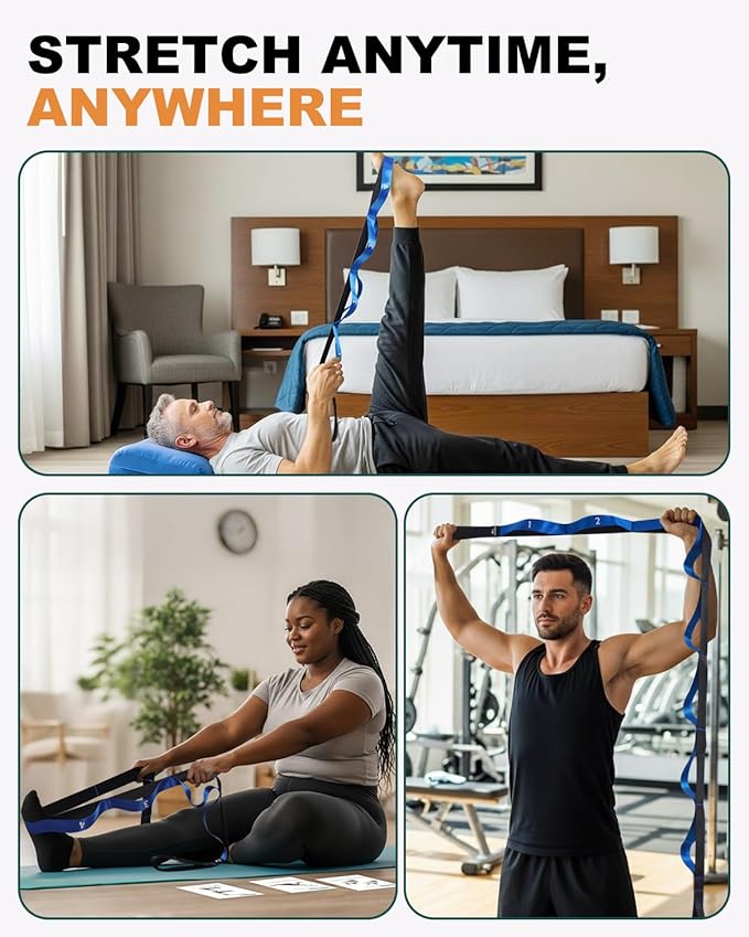 - [Multi-Scenario Use] The leg stretcher with 10 numbered loops is ideal for physical therapy, stretching, yoga, exercise, and pilates, allowing precise tracking of your stretching progress