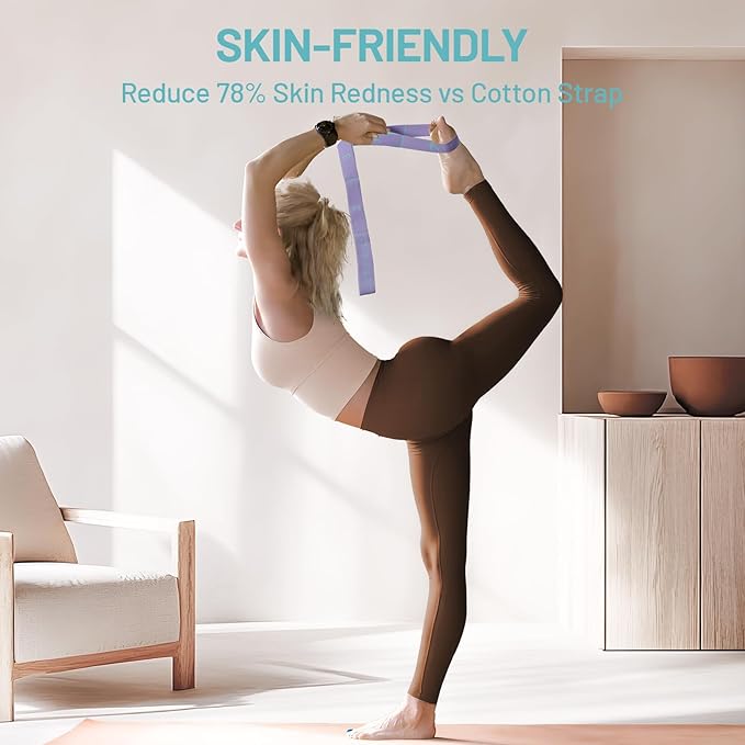 - Premium Design: Yoga stretch strap is made of high quality polyester cotton, soft, skin-friendly, no odor. Double precision stitching ensures durability, it has 11 individually numbered stretch loops with stretching pose guides for personalized stretching