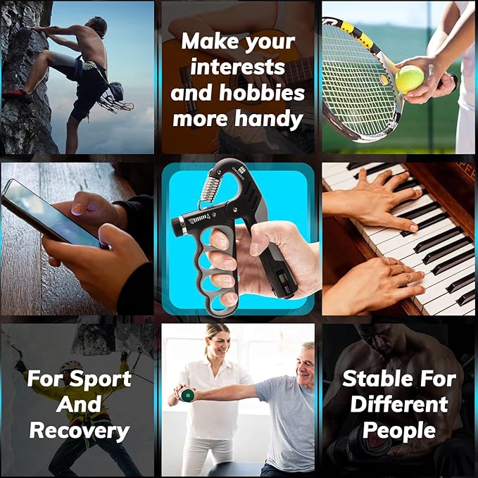 - REHABILITATION BENEFITS: Specifically designed for rehabilitation, this hand grip strengthener is perfect for recovering from hand injuries, rheumatoid arthritis, carpal tunnel syndrome, tendonitis, fractures, and post-surgery recovery, making it an essential tool for muscle conditioning.