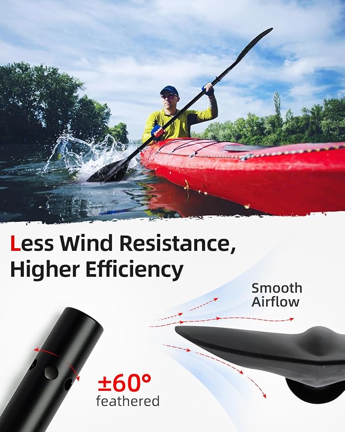 - 【LIGHTWEIGHT AND DURABLE 】The aluminum alloy shaft is known for its strength and ability to withstand the wear and tear of frequent use. In addition to its durability, the aluminum alloy shaft also offers better performance and more efficient paddling. PP blades are lightweight and indestructible blades offer flexibility and efficiency, making it easier for paddlers to navigate through the water with ease.