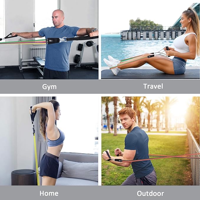 - Versatile Accessories: Our resistance bands provide you with multiple ways to train your body and come with cushioned handles, ankle straps, and a door anchor