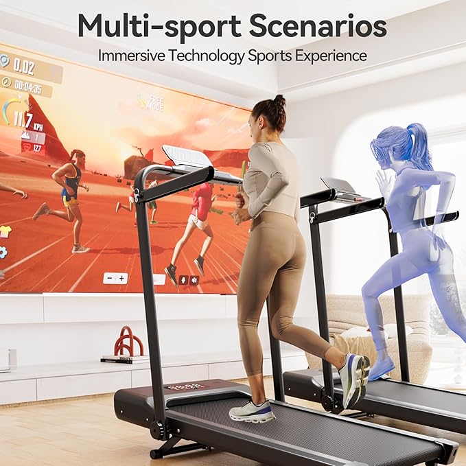 - Walking Pad Treadmill with 9% Incline : The Under Desk Treadmill combines a walking pad, folding treadmill, desk treadmill, and hill climber into one compact unit. With the handrail folded, it functions as an under-desk walking pad (0.6-3.8 mph) for light exercise. When raised, it supports jogging or running as treadmill at speeds of 0.6-7.5 mph . The 9% incline simulates hill climbing, enhancing fat-burning