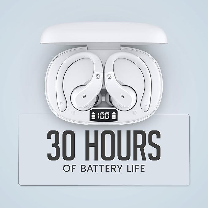 - 30 Hour Battery Life + USB-C Charging: Each of the over ear Blue tooth ear buds can play music for 6 hours, and the charging case keep the wireless earbuds running with 24 hours of music; Charge your sports bluetooth headphones for running once and use them for weeks of workouts; The only gym headphones men and women can use for years on end