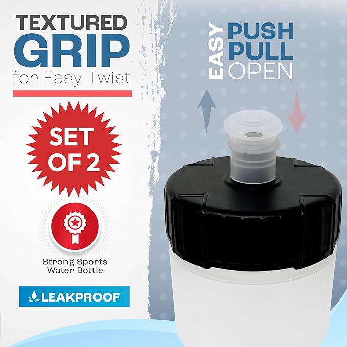 50 Strong Sports Water Bottles – Reusable 22 oz BPA-Free Plastic Bottles with Pull Top Cap – Made in USA – Top Rack Dishwasher Safe – Fits Most Bike Cages Brand