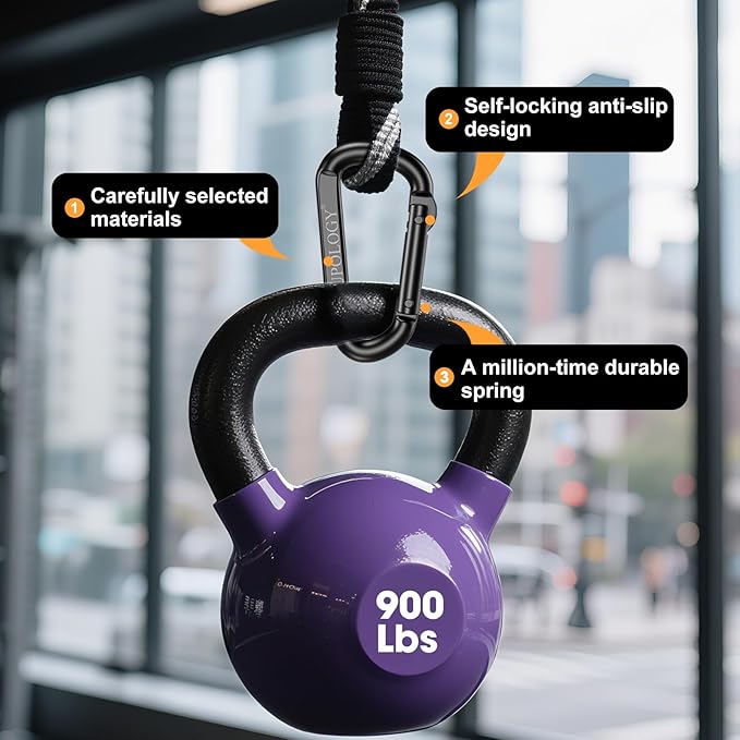 • ✅【Up to 1000lbs Load】 From the latest profession lab data, the break load of SUPOLOGY clips is 1000 lbs, and the static load is 900 lbs, it is a real heavy duty carabiners clips;