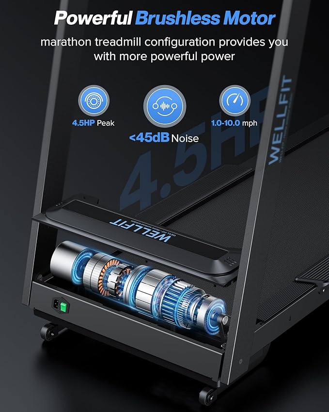 - 4.5HP Powerful & Quiet Brushless Motor: Brushless motor with max 4.5 HP provides efficient and low-maintenance operation. The treadmill supports up to 500 lbs and speeds from 1.0 to 10 MPH, perfect for everything from leisurely walks to intense runs, all while maintaining a under 45 dB low noise level.